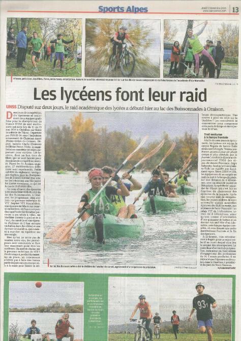 Pour la seconde année consécutive le lycée Rene CHAR remporte le championnat académique de raid multisport. Après deux jours d’effort Mia RAICHON (1ECO2) , Nathan GUILLOT (TECO3), Tanguy RICHARD (2nde3) et Camille GRAS (2nde4) décrochent une qualification pour les championnats de France 2016 en Côte D’or.