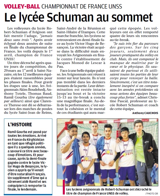 LES CHAMPIONNATS DE FRANCE UNSS 84