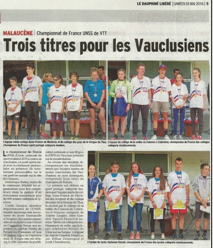 article Vaucluse Matin 28_05_16 Championnat de France UNSS de VTT 30 Mai 2016 966 × 1124 article Vaucluse Matin 28_05_16 Championnat de France UNSS de VTT