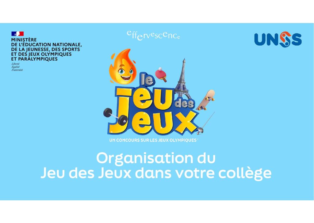 Le Jeu des Jeux est une compétition ludo-éducative à laquelle prennent part tous les élèves de 5èmelicenciés UNSS de France.