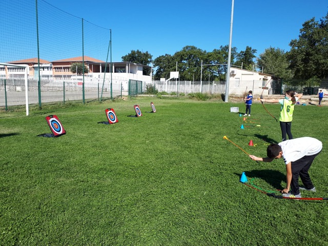 Découverte d’activités pour les élèves de 6eme avec du VTT, du base ball freeze bee, du football et du parcours athlétique.