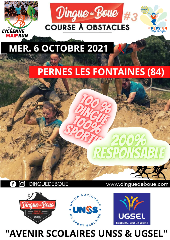 - la Dingue de boue avenir scolaire le mercredi 6 octobre 2021 à Pernes les Fontaines (course à pied avec du franchissement d’obstacles)